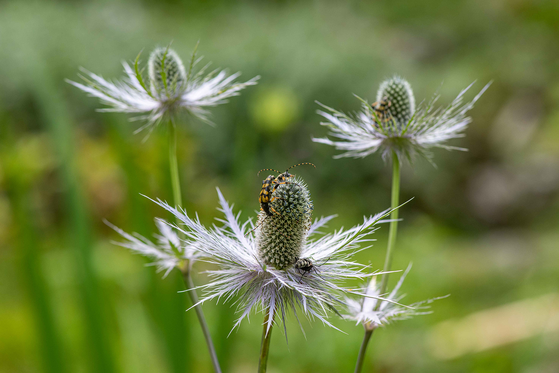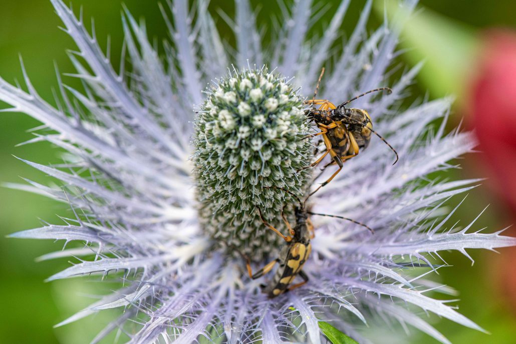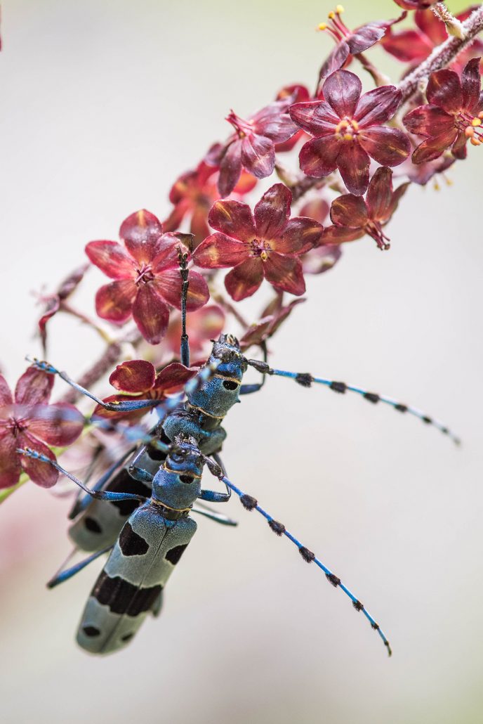 Barvita paleta rastlin v vrt privablja tudi številne žuželke, npr. alpskega kozlička. Foto: David Kunc